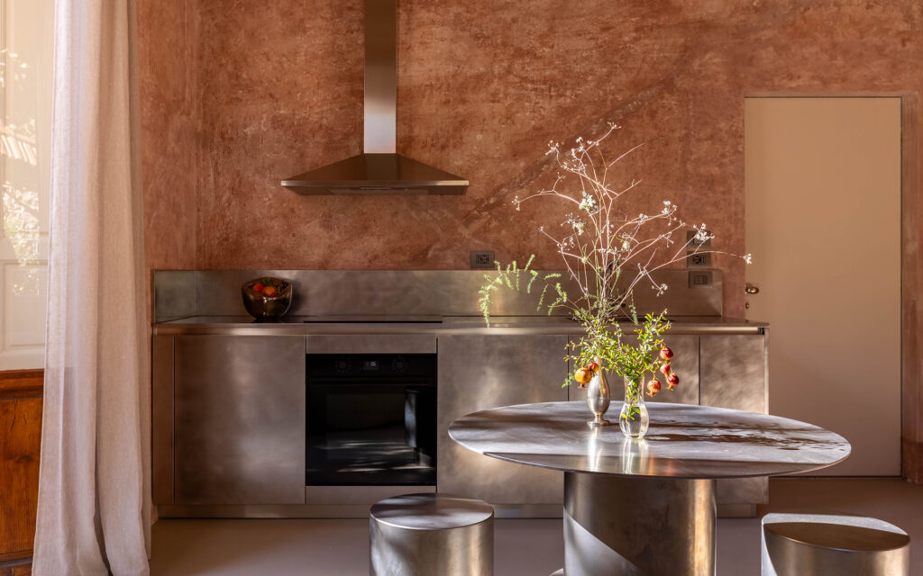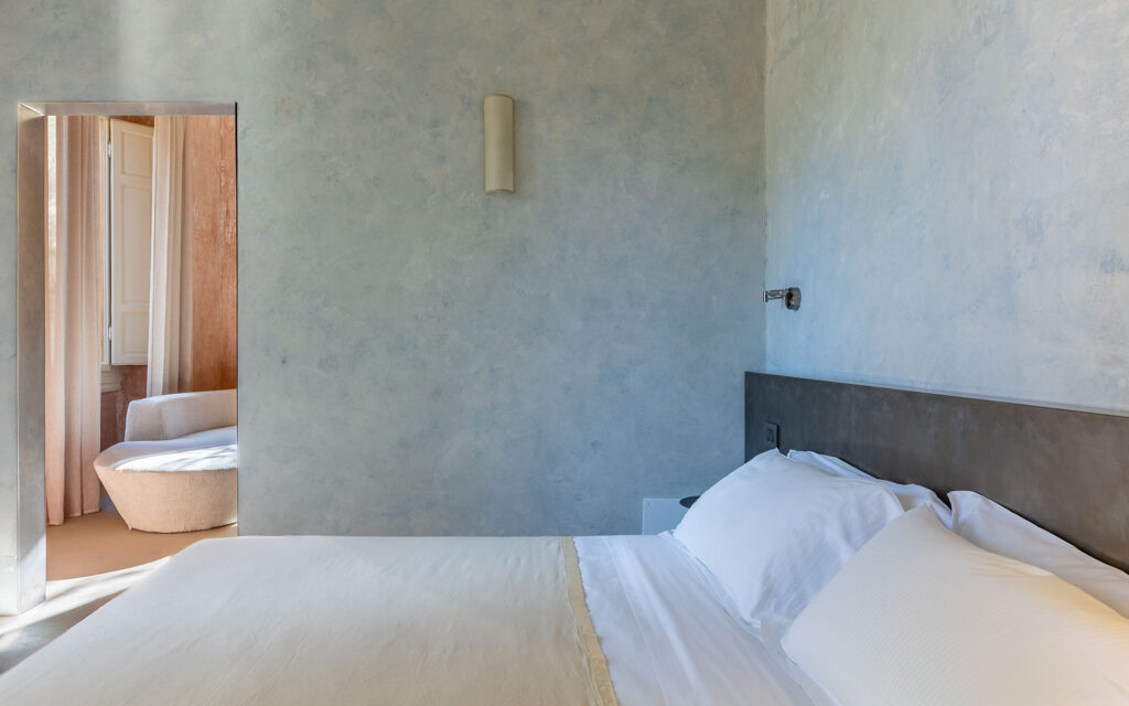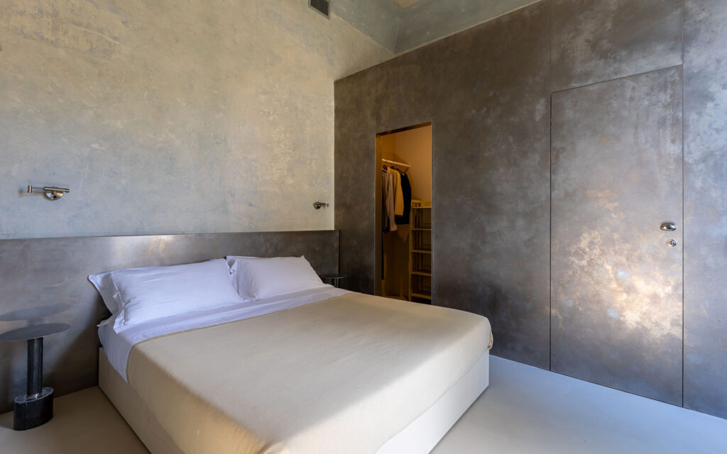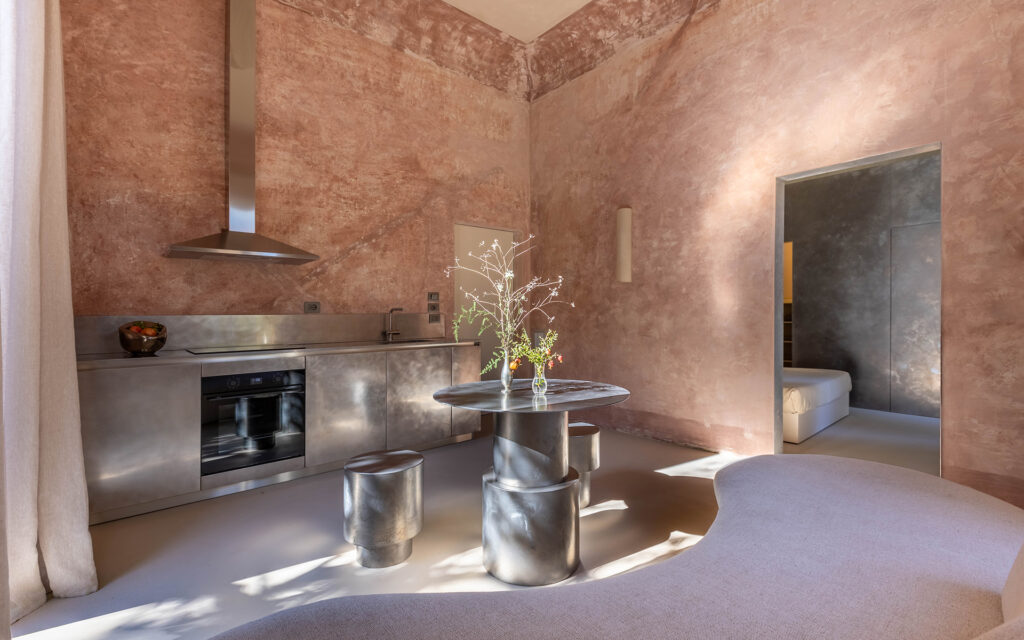 A sculpted memory — This one-bedroom apartment is a dialogue between past and present, where designer Pietro Franceschini explores the emotional power of material and form. Inspired by exposed vintage plasters and the timeless geometry of Brancusi, the space merges Deco, modernist, and colonial echoes into a clean, expressive aesthetic. Custom furniture crafted by local artisans anchors the interior, while a sculptural bathroom-closet unit enhances spatial flow with monumental grace.